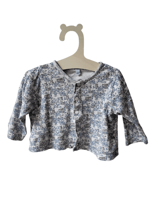 Adorable gilet bébé d'occasion, en bon état, avec un imprimé délicat. Léger et confortable, idéal pour les journées fraîches. Parfait pour un look doux et élégant pour les tout-petits ! Taille 6 mois.